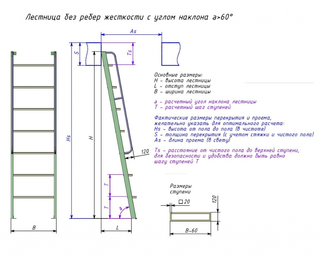 Конструкцию желательно оснастить поручнем. Стоимость поручня 600 руб за м.п. оплачивается дополнительно.