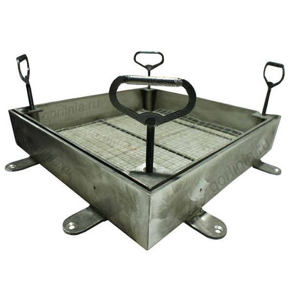 Корыто вынимается за 4 навинчиваемые рукоятки по углам. Заполненная плиткой крышка весит около 100 кг.