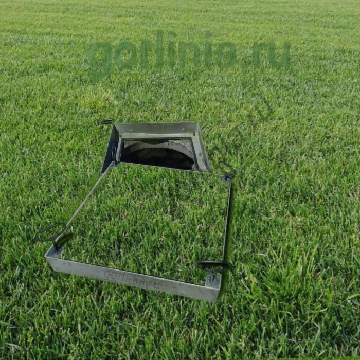 Изделие изготовлено из листовой стали AISI 304 5мм с применением лазерной резки, гибки на прессовом оборудовании и сварки. Снизу в дне вырезаны дренажные отверстия D10 с шагом 70-100 мм, чтобы травяной покров не всплывал при поливе и осадках.