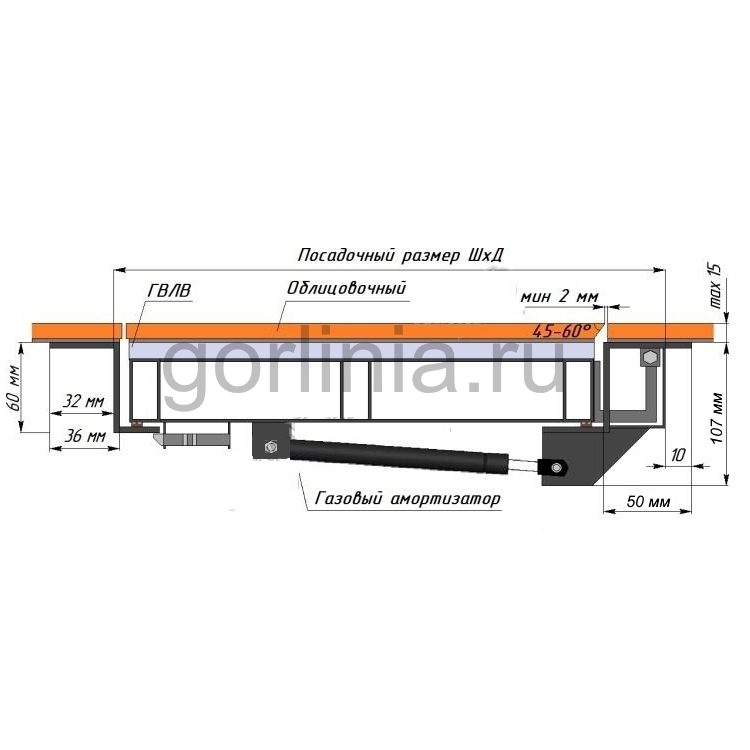- Съемная ручка под четырехгранную личинку замка.