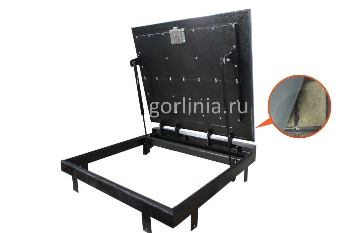 Доработки модели: минеральный утеплитель проложен в каркасе дверцы, подшит снизу крашенной оцинковкой. Петлевая щель закрыта кожухом для отсечения потоков холодного воздуха из погреба. Эластичный дверной уплотнитель проложен по периметру примыкания сопрягаемых частей изделия.